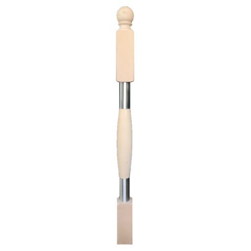 Nieuw! Luxe hoofdbaluster eindbaluster met RVS en beukenhout 1135x80mm. Voor renovatie of nieuwbouw van uw trapleuning, traphek in moderne of klassieke stijl.